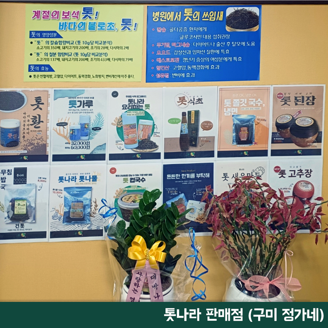 각종 톳 제품을 체험할 자리를 마련하여, 고객이 원하면 즉석에서 시식을 할 수 있는 정감이 가득한 가게입니다.